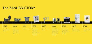 V roce 1916 začal mladý podnikatel Antonio Zanussi v severovýchodní Itálii vyrábět sporáky. Brzy vyvinul řadu důmyslných výrobků. Od té doby společnost Zanussi plnila na poli domácích spotřebičů průkopnickou roli. Přišla s inovacemi, jako byl první plynový sporák a také první chladnička s automatickým odmrazováním. Stejně jako před 100 lety, i dnes je základním kamenem našeho úspěchu důmyslný italský design.